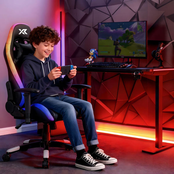 Enriched with Neo Motion™ Sync LED for app-controlled customisability. Egonomically designed and perfectly sized for junior gaming enthusiasts and growing streamers, the X Rocker Agility Compact is a full adjustable gaming/office PC chair. Featuring all the same benefits of the full-sized Agility tournament gaming chair, including 3D adjustable armrests, back-rest tilt, and additional neck and lumbar support cushions for personalised comfort and contoured support, during many hours of study or play.