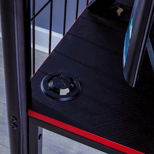 Inspired by eSports gaming, this bed is finished in black powder coated metal, with red highlights and a carbon fibre effect desktop for added style points.
