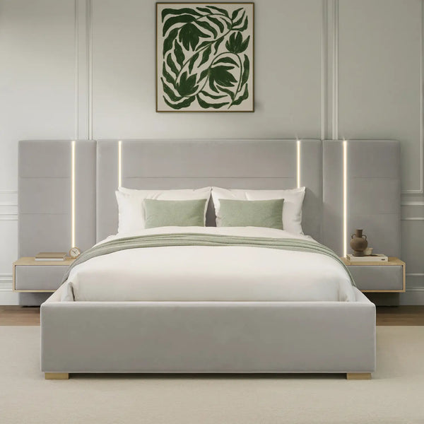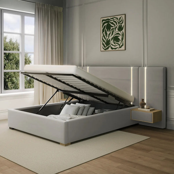 Amelia Ottoman Hotel Bed With Bedside Tables and App Controlled Lights - Grey (2 Sizes)
