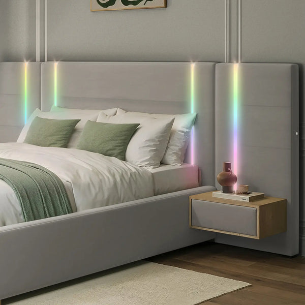 Customisable RGB LED lighting integrated into the headboard brings modern convenience, allowing you to set the perfect mood. Change the lights at the touch of a button or by using the Neo Motion Sync allowing you to select from over 200 patterns, set timers and dim the lights.