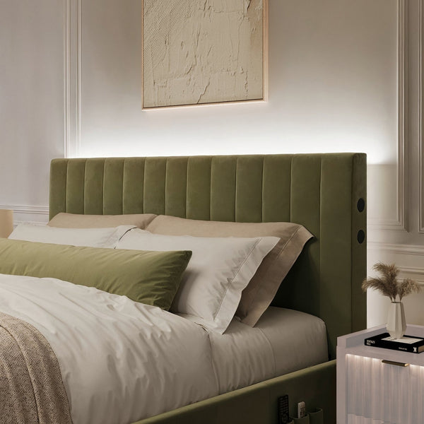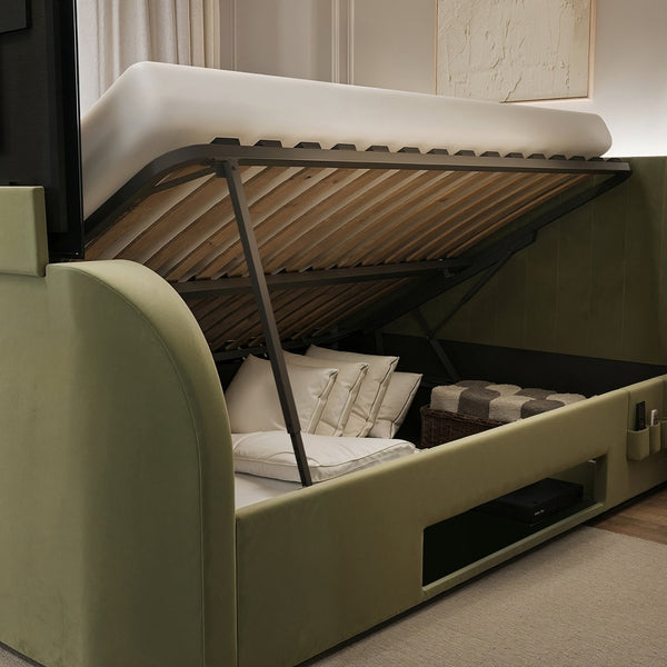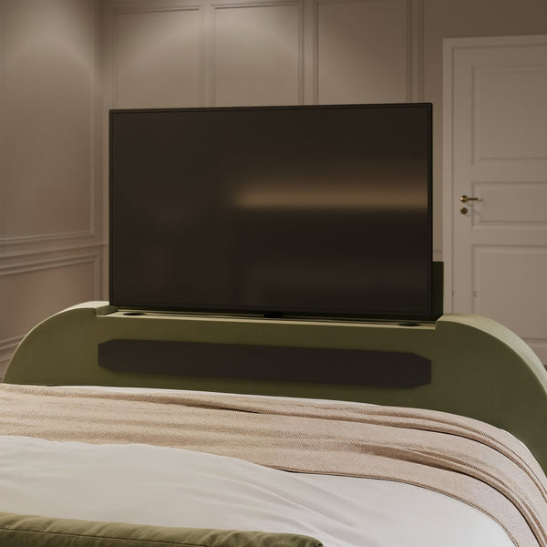 Maisie 5.1 Ottoman Bed with Electric TV Lift, True Surround Sound and App Controlled LED Lights - Olive Green