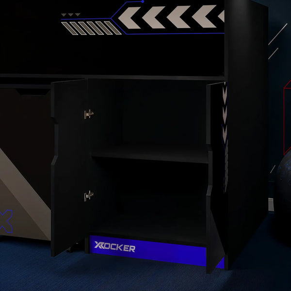 A gaming bed, desk and storage built into one. The X Rocker gaming bed collection provides the perfect space saving solution for any kids bedroom.
