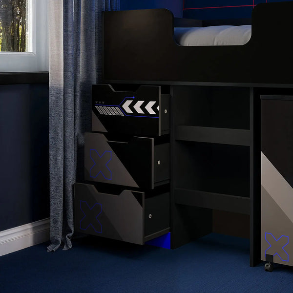 Octane Mid Sleeper Gaming Cabin Bed Storage and Pull-out Desk - Blue